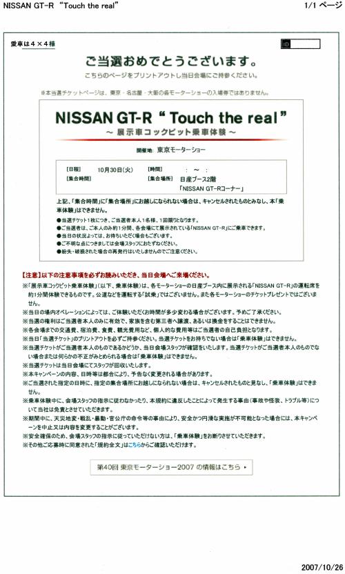 こちらは、「NISSAN GT-R “Touch the real”」応募受付事務局です。