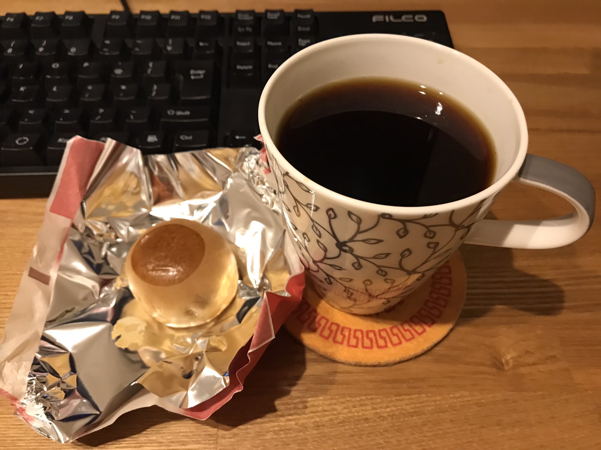 15:49 冬の布袋満腹セットに付いていた自家製スノーボールとセブンカフェのホットコーヒー☕️