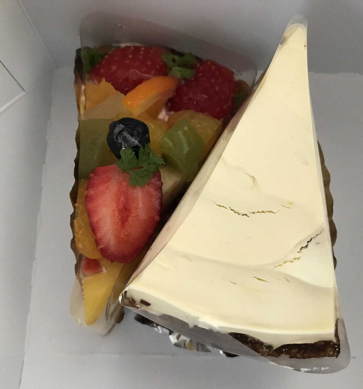 08:09 一昨日Sweet Lady Janeで両親が買ってくれたフルーツサラダのクラフティーとミルクレープ