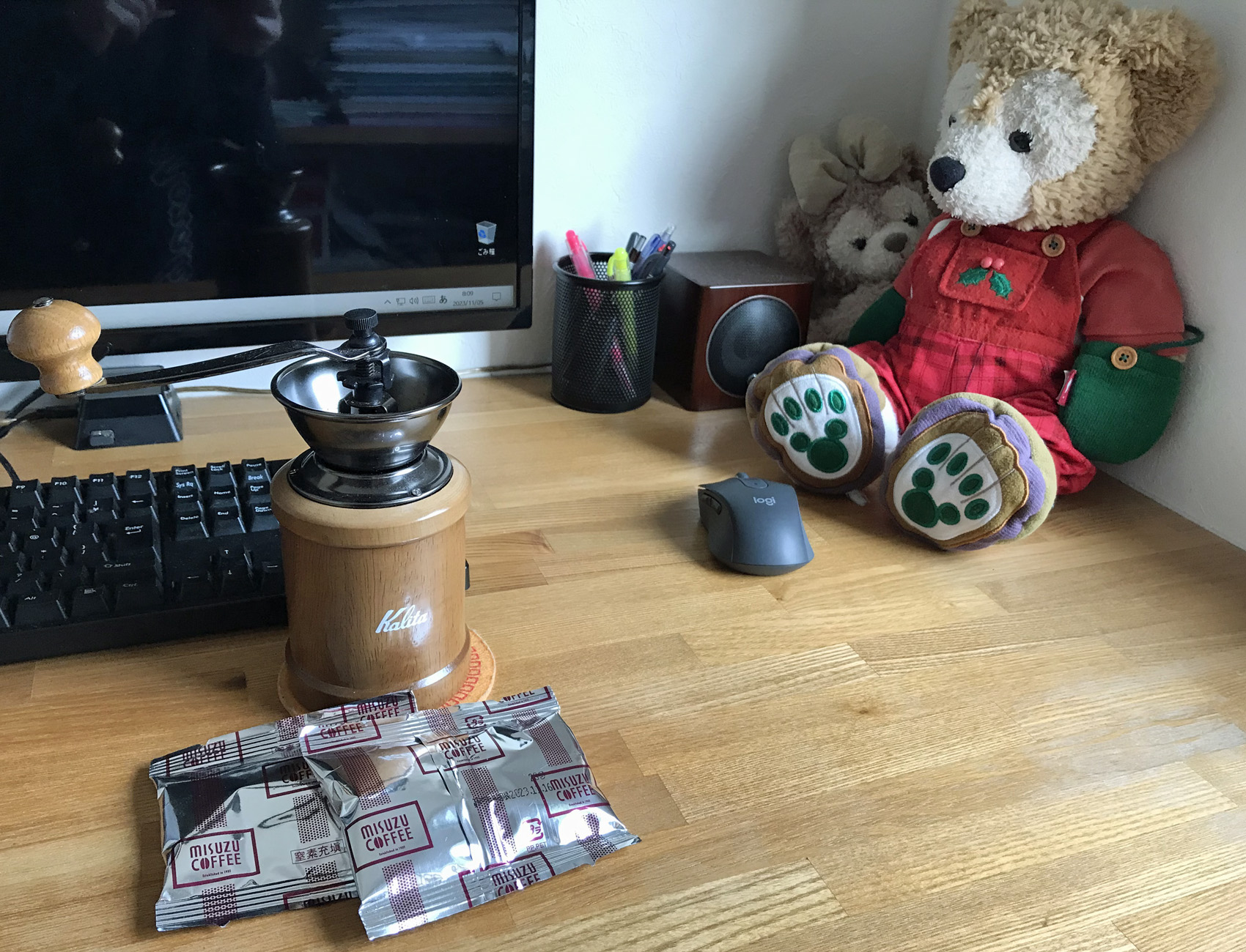 ラビスタ函館でもらった豆でコーヒーを淹れる。ガリガリガリガリ・・・