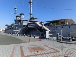 近くの三笠公園で「記念艦みかさ」を初めて見学。