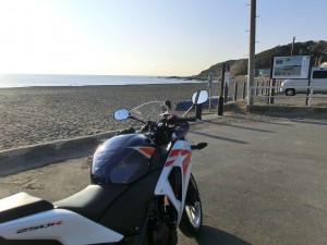一番奥の灯台方面まで行き、ここも2輪置き場が特に設けられておらず迷惑にならない感じの道端に駐車。ほかにもバイクの人が来たのですが置き場がないので戻っていってしまった感じでした。