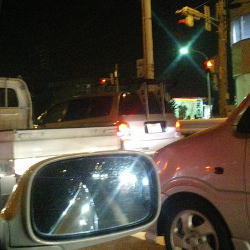 もうちょい走ったら1車線になるしそしたらかっとんでいこうかなぁと思ってたら…やけに後ろからパッシングされる!!俺そんなに遅いのか!?と思いつつバックミラーに目をやったら回転灯ついたーヽ(`Д´)ノウワーン!!拡声器かなんかでしゃべってたっぽいけどもうアコードに乗ってた頃に警察に停められるのは慣れてたんでとりあえず路肩に寄せて停めましたよ。