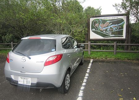 デミオは、明るいグリーンが似合うとおもうのですが、近頃のレンタカーはグレーばかりで、ちょっと残念です。