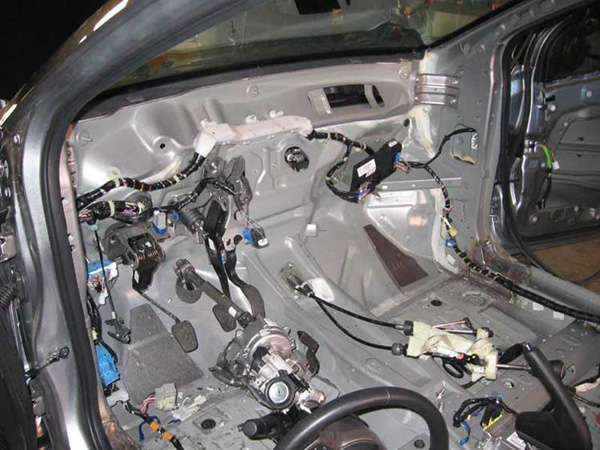 Once you finish up that easy task you need to remove all of the sound deadener Mazda installed in the chassis. There are two methods to do this. #1 is with an air chisel and being very careful to not punch a hole through the floor of your car and #2 use dry ice. The dry ice method is something I had not done before but it sounded easy enough. That and if you have left over dry ice a plastic 2 liter bottles can be lots of fun. Check out the video below of me using the dry ice to remove the sound deadener.