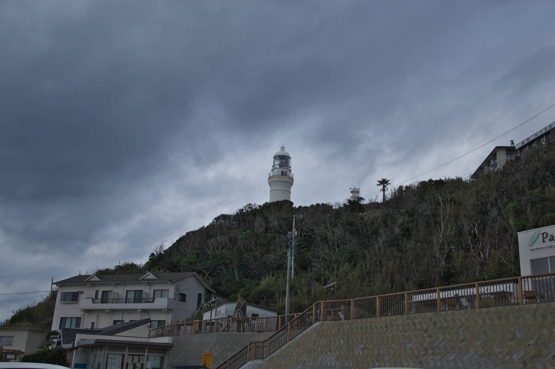 ここから高台にある灯台まで階段を上がります。