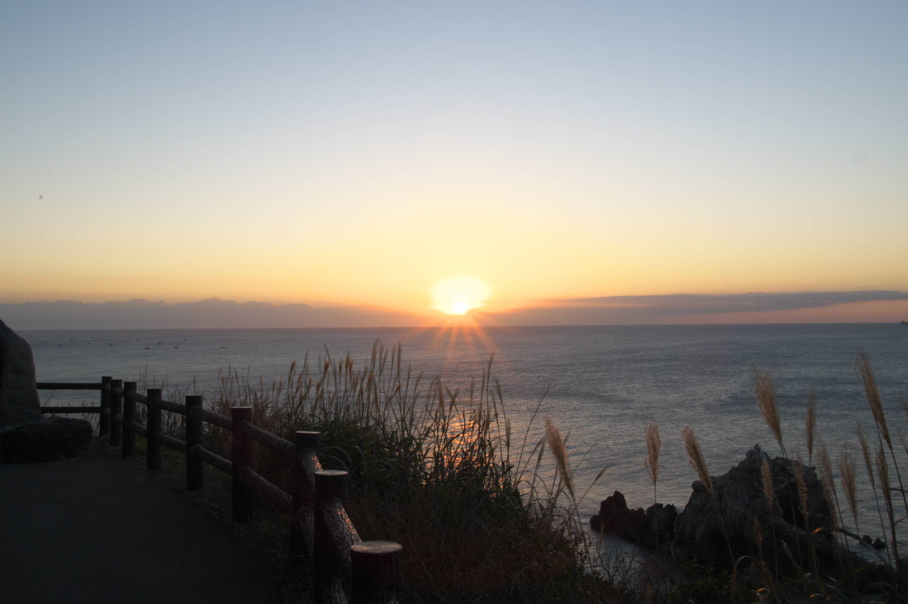 海上に少し雲がかかっていて、朝陽を拝めたのは7時を過ぎました。