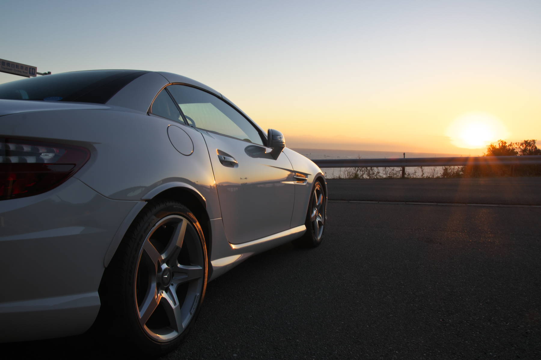 駐車場に戻るとちょうどいい具合にSLKに朝陽が当たっていたのでパチリ。やはり良いスタイルですねぇ。