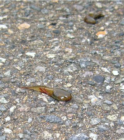 4日午後4時半ごろ、七尾市中島町の市民センターの駐車場で、「ボテボテ」と何か落ちるような音に気付いた男性職員(55)が外に出ると、約10メートル四方のアスファルトや車のフロントガラスに100匹ほどのオタマジャクシの死骸が散乱しているのを見つけた。