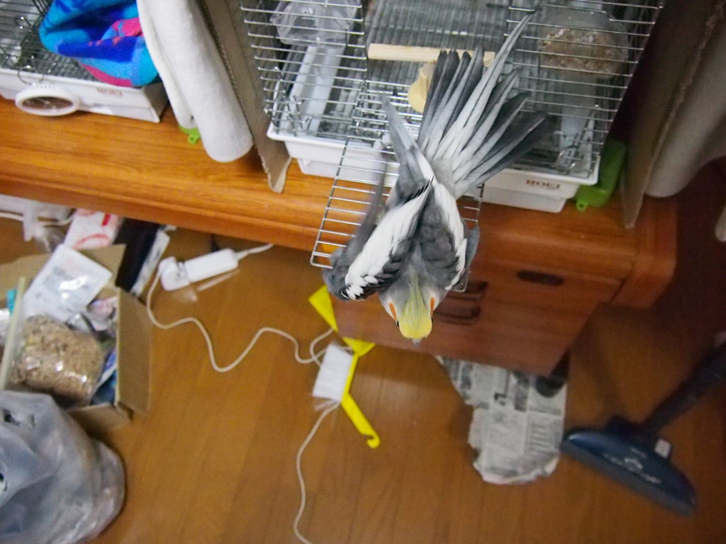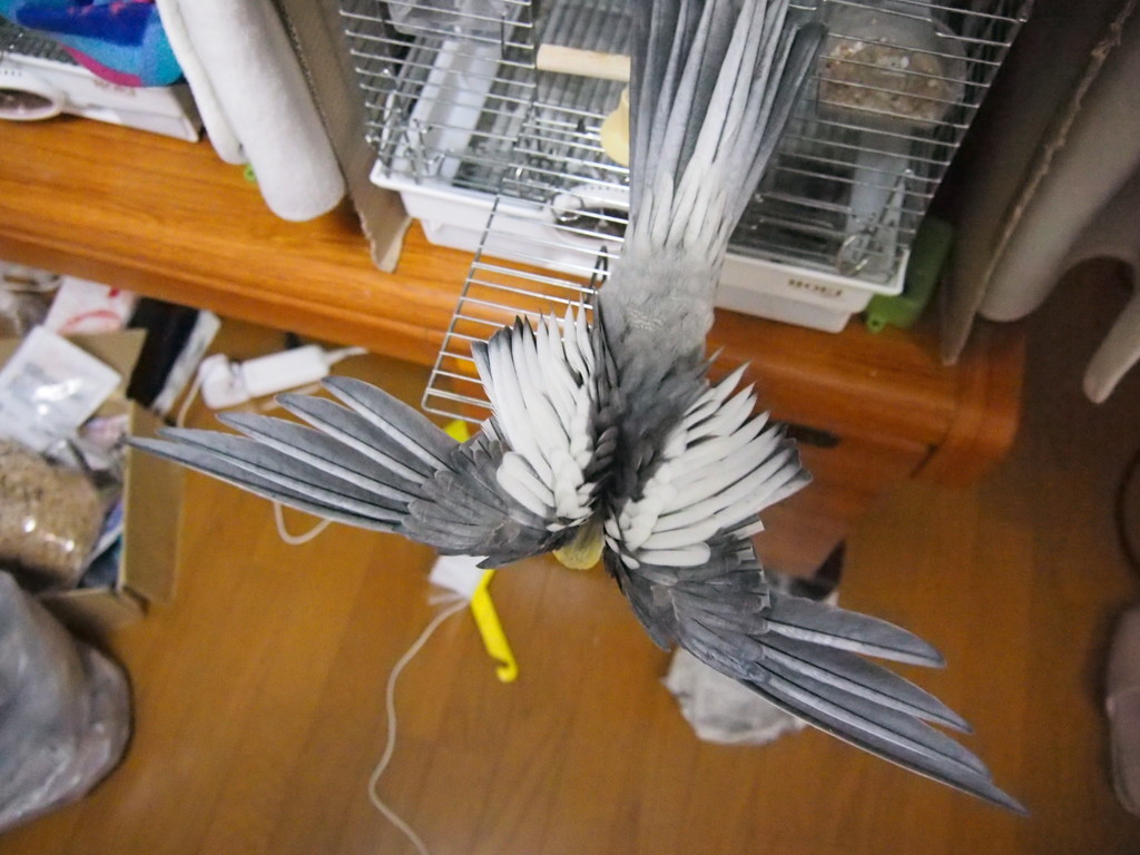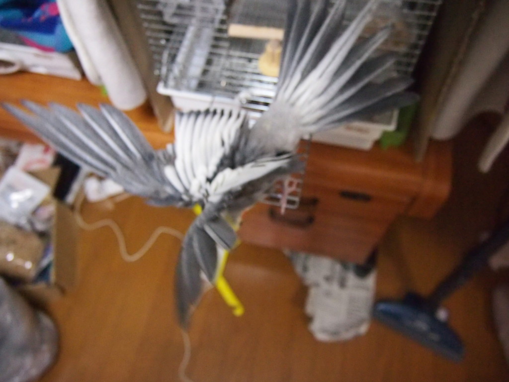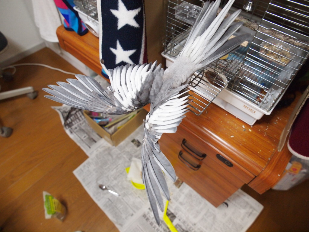 以前から、ウチの鳥さんが、羽を思い切り全開にしているところの写真が撮りたいなぁ、と思っていました。