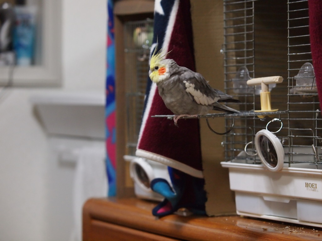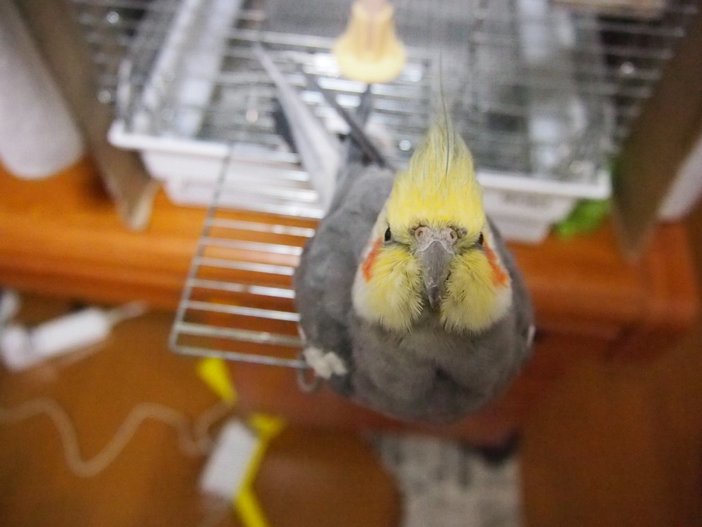 これで撮れるとは言っても、オカメインコさん、恐がりなので大きいカメラを近づけると逃げていきます。