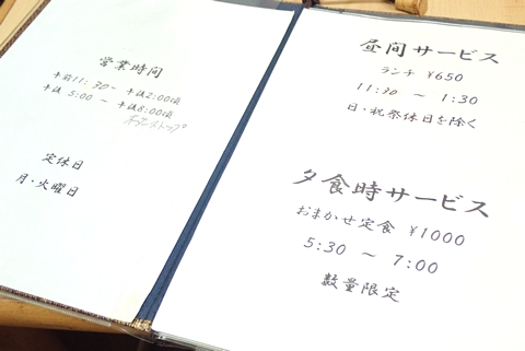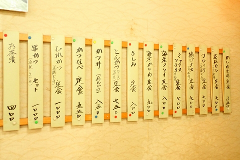 店内の壁には短冊に書かれたメニュー。