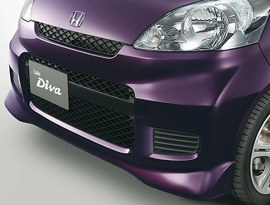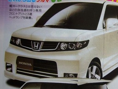 顔は激変で、ワゴンRスティングレー風のヘッドライトでベゼルは完全にブラックアウト。角いベゼル内には内側からハイビーム、ロービーム、ウィンカーの3連リングライト。ロービームはプロジェクターでHID。黒いグリルもベゼルを直線的に結んだ感じでHマーク部分は少し凝ったデザインでした。