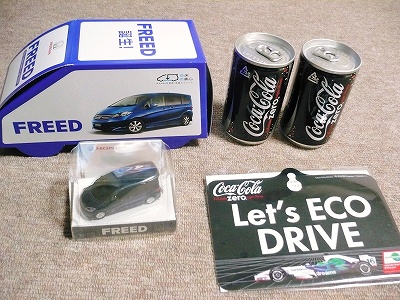 箱に入ったお菓子やミニカー、そしてホンダレーシングがコカコーラとスポンサー契約をしたとかなんとかでコーラーもいただきました。