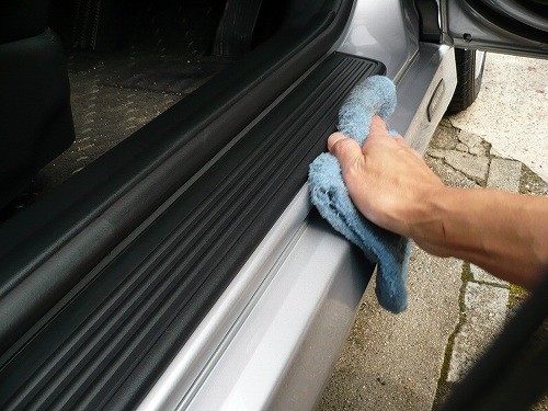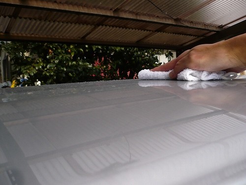 そして、タオルはコート前に一度濡らして搾ったものを使っています。乾いたものだとバリアスが水分を弾くため、タオルと水分とバリアスがバラバラな働きをして綺麗にコートできません。