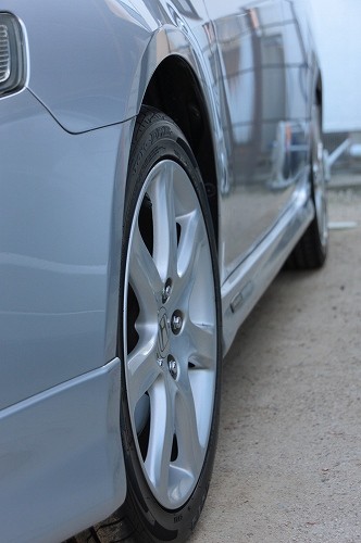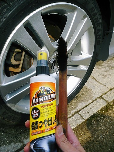 ホイールに付着したアーマーオールがこれまた有効に使えまして、ホイールを拭き取るといい光沢感が出るんですね~。もともとシリコン系スプレーですからどこに使っても光沢は出ますよね。