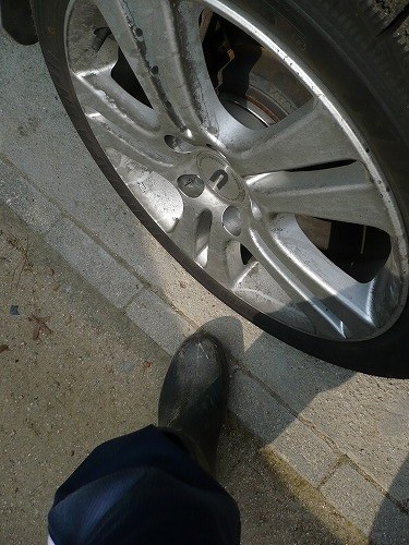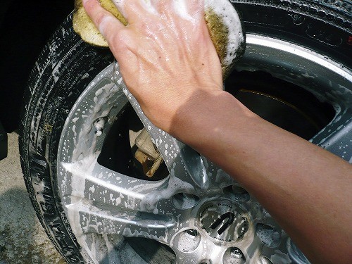 まずは中性洗剤ジョイでタイヤとホイールをゴシゴシ。当然ですが、ボディ用とは別のスポンジです。