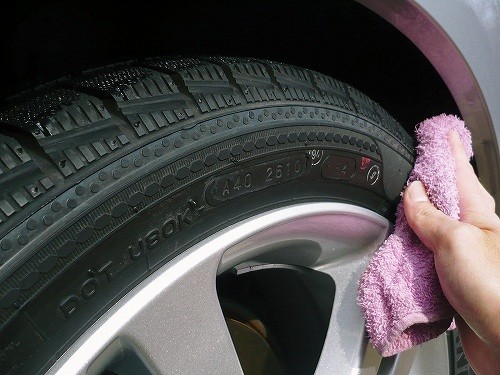 タイヤとホイールは、タイヤ&ホイール専用の雑巾で水分を拭き取り…