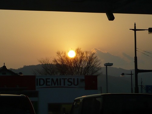 給油中に娘が撮っていた夕日。娘が一生懸命私に説明しながら見せてくれた写真です。