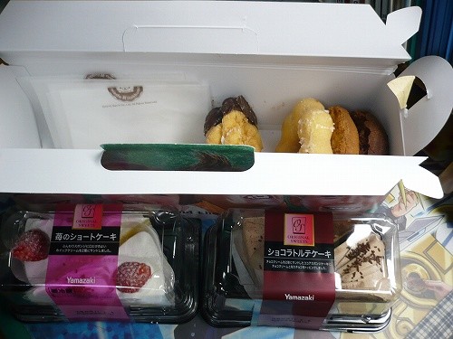 そして娘と一緒に買って帰ったミスタードナツ。ところがお袋がケーキを買ってきてくれていました。