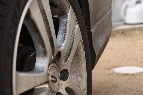 ホイールハウス内を洗うと、いつもじゃ考えらない黒ずんだ汚れが…