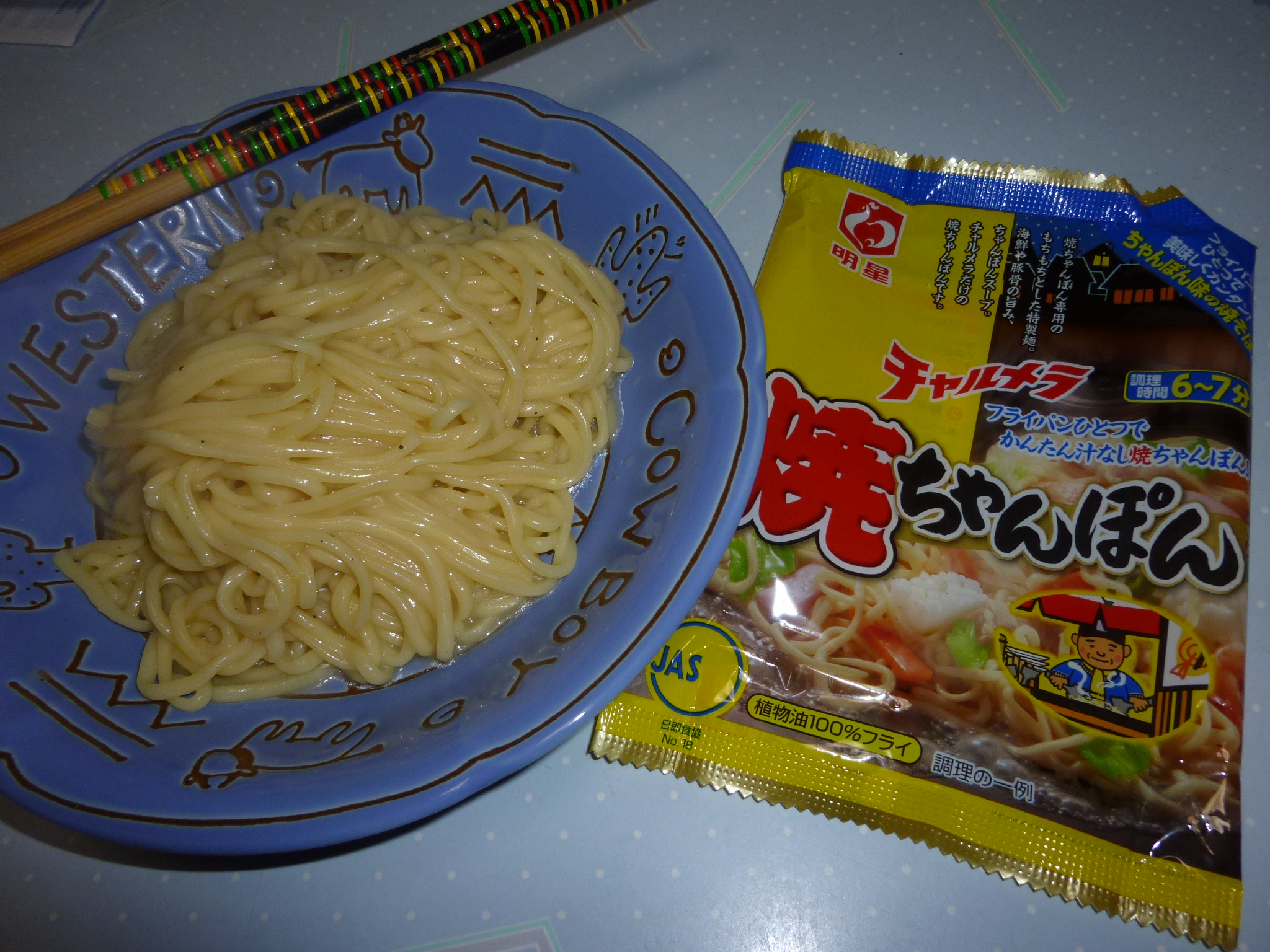 今日の即席ラーメンは明星チャルメラ焼ちゃんぽんです。