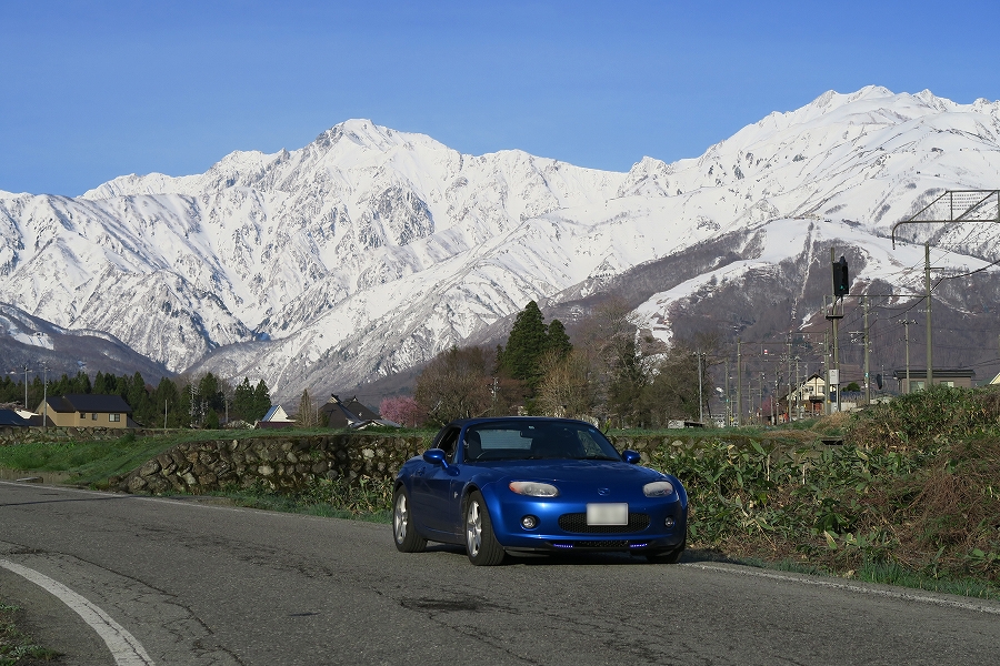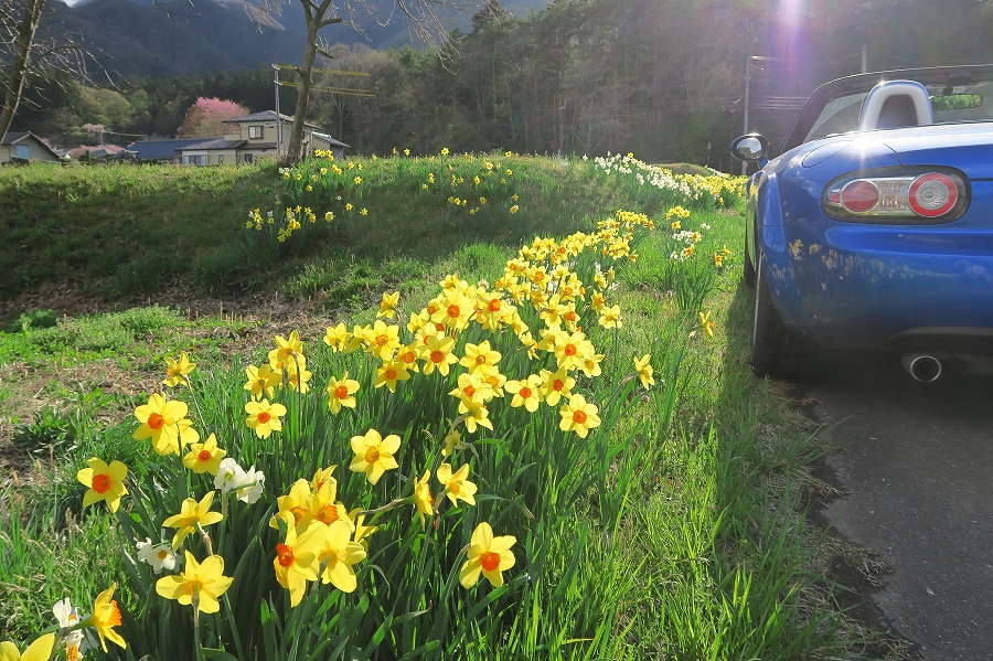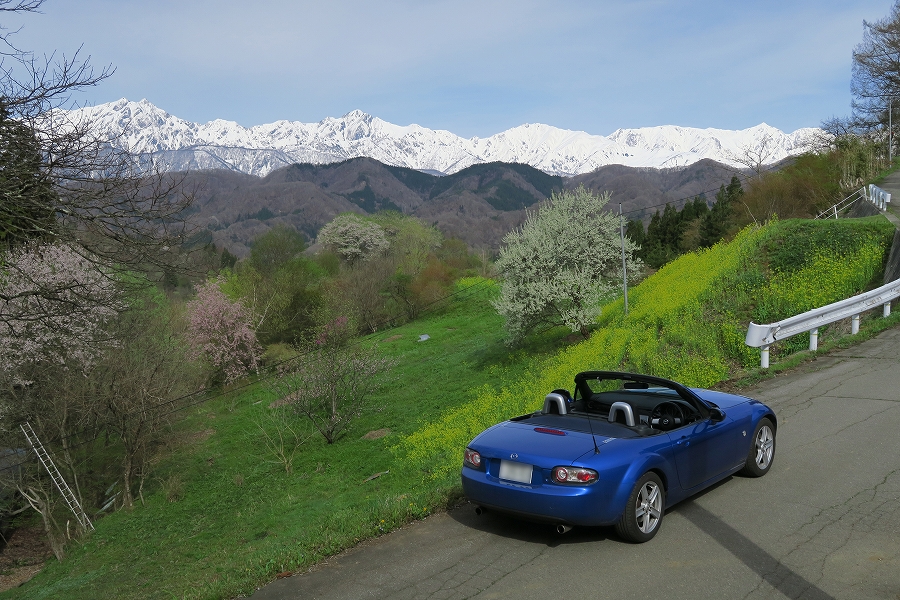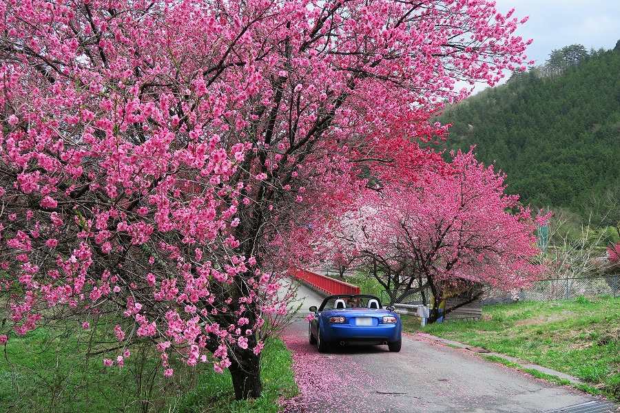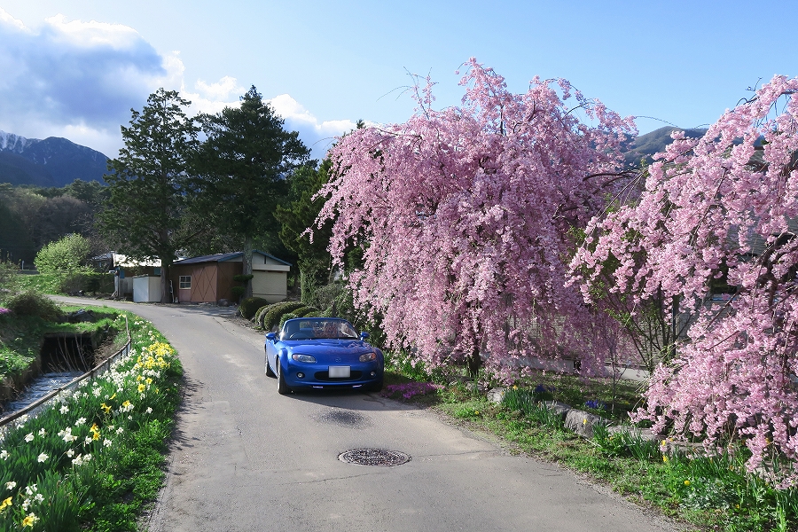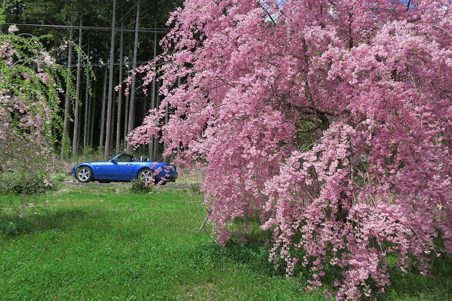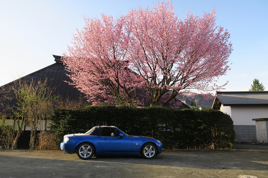 満開の桜とロードスタ