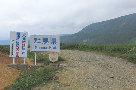 反対側を見ると、こんな山が。晴れてたら登るんだけど、この天気じゃねぇ。またいつか来なくちゃ。いやぁ、それにしても涼しい、っつうか寒い!風がビュービュー。