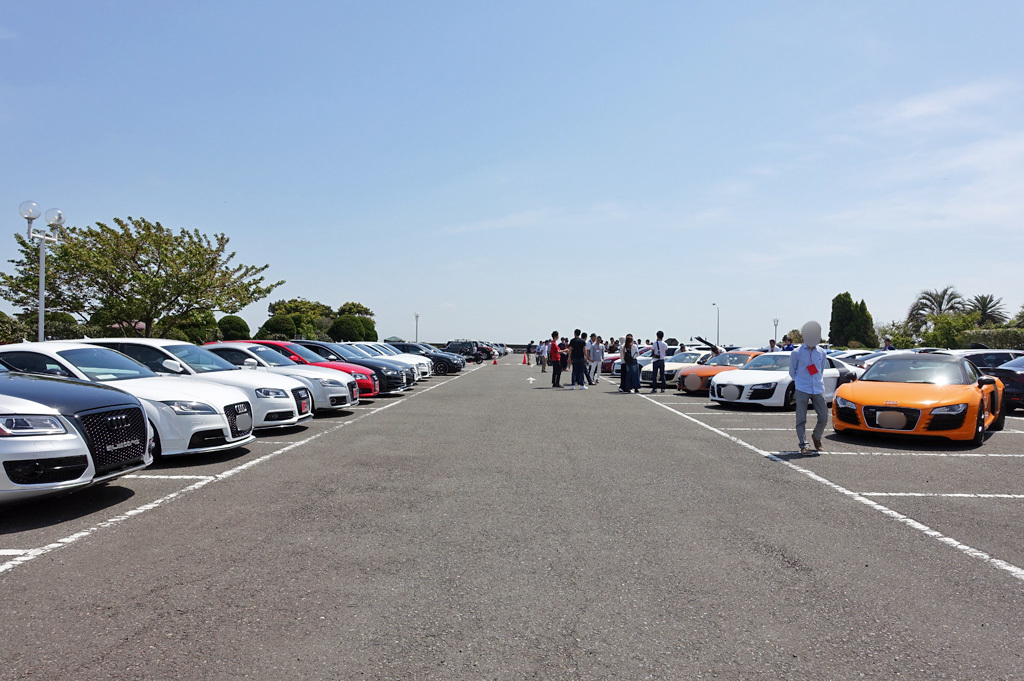 ↓今日のシヤア ...着いたのが最初の方だったので端の方に停めたつもりが、予想外の参加80台以上?であうでー以外は家の赤い子含めて3台しかいないというアウェイ感(^^;