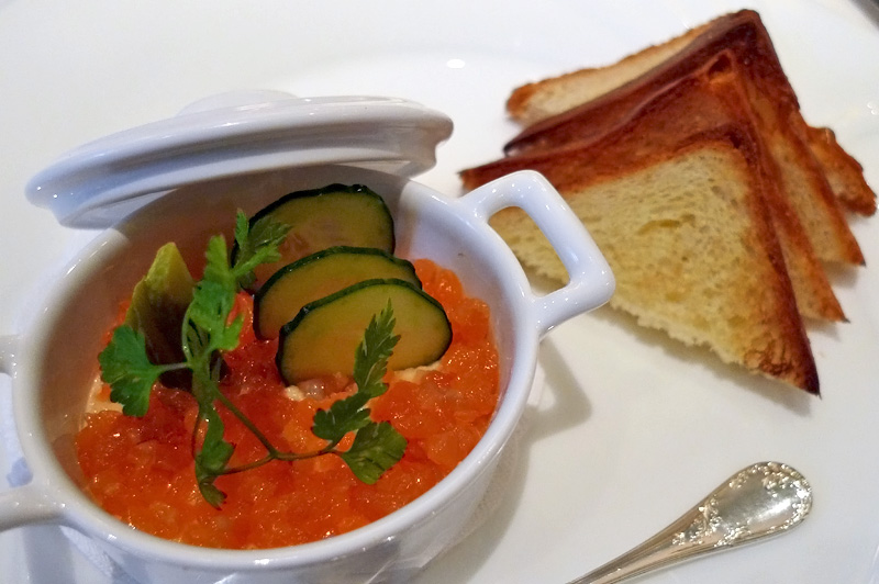アイスハーブティー  前菜1:サーモンのリエット(他にもう1品) メイン:蝦夷鹿の??