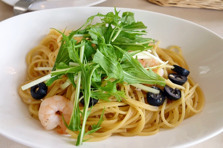 今回頼んだのはボスケットランチ ¥1,480- ↓中:小エビと黒オリーブのアンチョビ風味