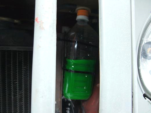 フロントグリルの向こうでグリーンティー保温中?