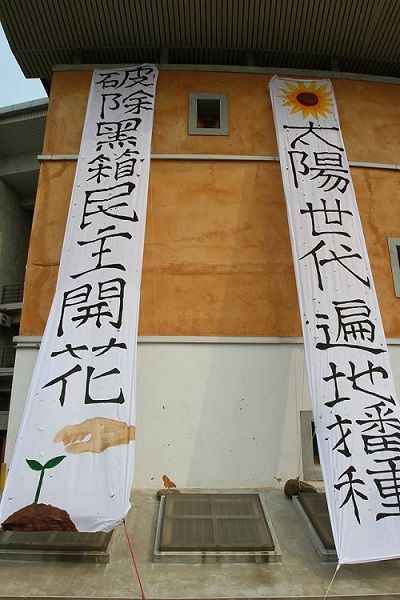 「太陽世代遍地播種」「破除黑箱民主開花」(ひまわり世代が至るところに蒔いた種は、