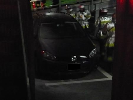 近所で消防車のサイレンが止まったので野次馬になって探してみるとセレナを停めている駐車場の斜め後ろの車が消火剤で薄いピンク色に染まっていました。