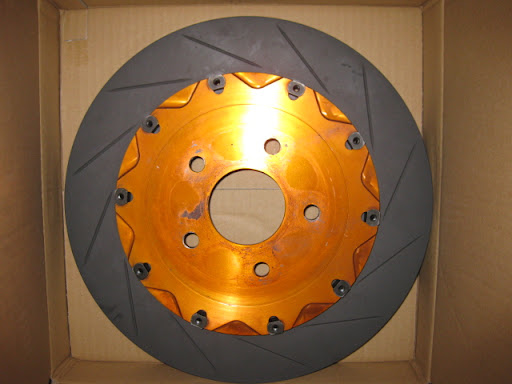 どうも雰囲気的にこのローター(ベル込みで)はマキノファクトリーのにそっくりだ。かといって確証はない。でもこの色は海外の2ピースローターでも見つけられない。どっちにしろワンオフってことはやれるわけがないだろう。絶対にあるはずだ。ということで採寸。おーー355*32の10穴。まず、ブレンボだね。ってことでDIXCELENDLESSのHPの図面を見て各部寸法をあたる。まず、まちがいなくブレンボだね。ただこればかりは実際どうなのかはやってみないとわからない。若干ちがう寸法もあるし。いいや、だめなら手直ししてつけちゃう。えいやっってわけで購入。今日、きました、DIXCELのFS-35532B 4R/5Lが。スリット入りです。