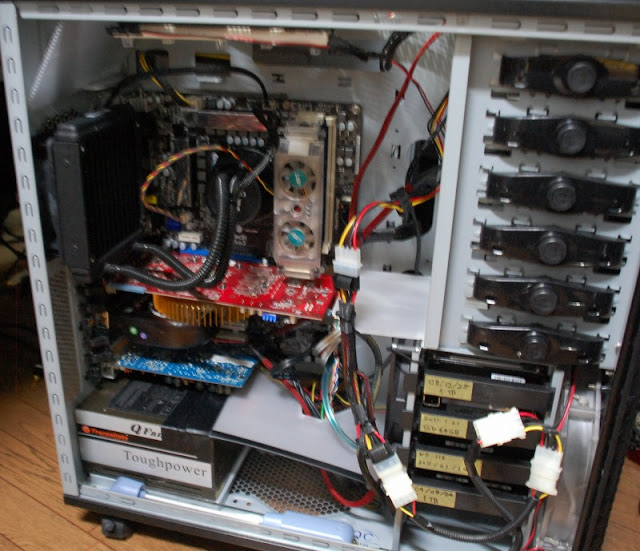水冷なんで、CPU周りが冷えないので、昔使ってお蔵入りになってたメモリファンを追加してあります。あと画像にはないですが、風洞板を設置してあります。