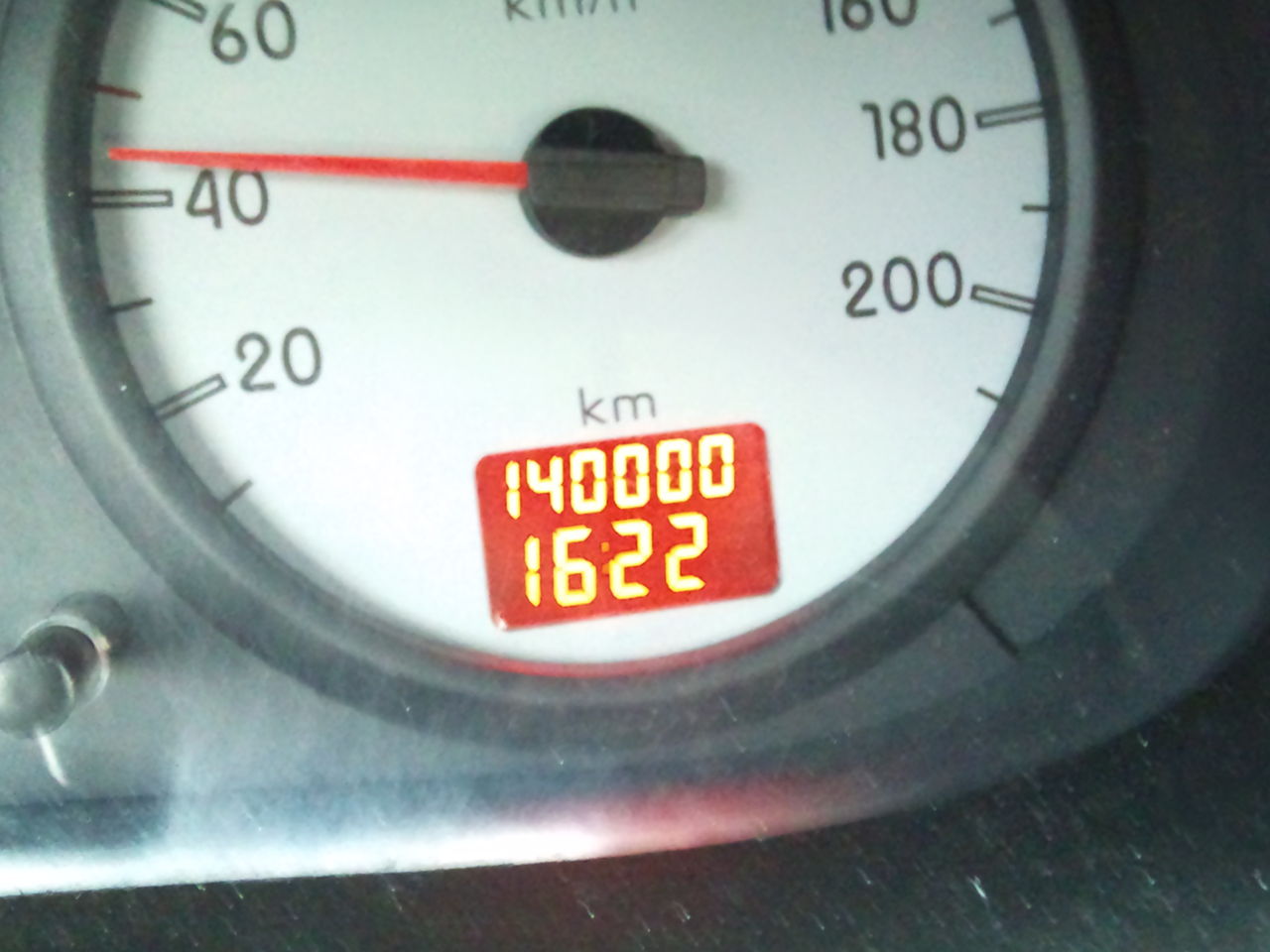ショップに向かう途中で、オドメータの数字が14万kmを示した。
