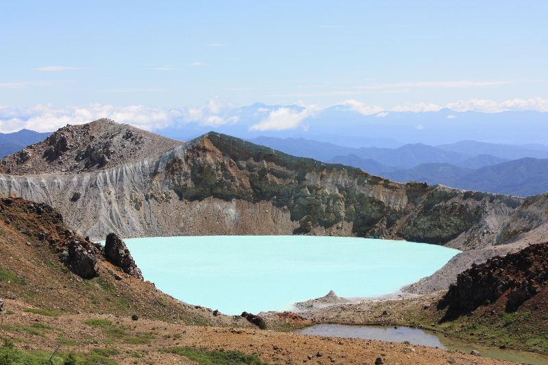湯釜にはエメラルドグリーンの綺麗な湖があります。