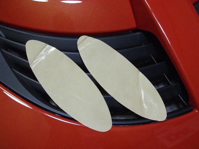 今更ですがグリオズ ヘッドライトシールド(厚手の透明シート)を切り抜いて貼り付けておきました。