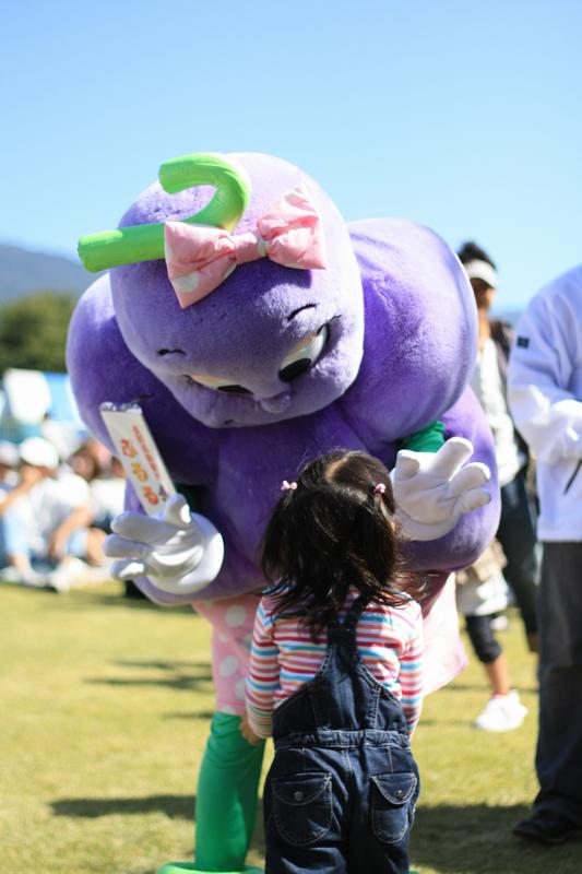 巨峰まつりのマスコットに娘も大興奮。