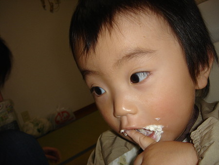 2人の子供達は 臭いのを我慢して なっとうを食べました!