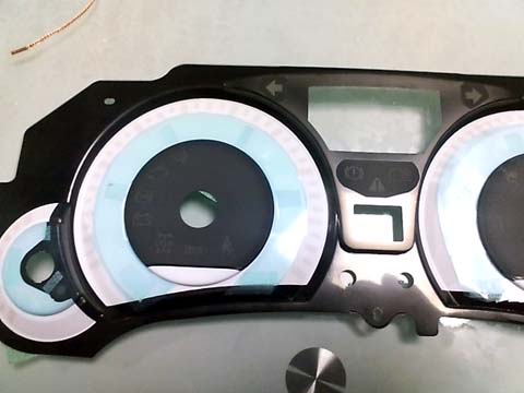 文字とオレンジのゲージの部分も同じLEDで光らせていると、狸猫さんより教えていただいたので、文字だけ色を変えられないものかと悩んだ結果フィルムを貼ってみる事に。