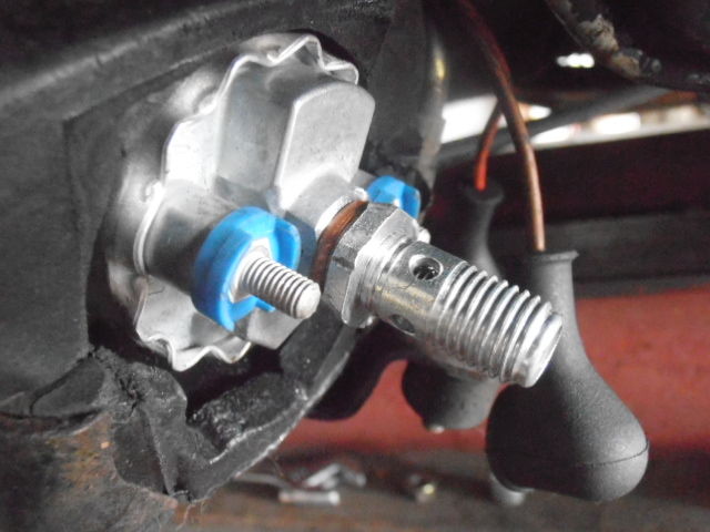 増し締めも増し締めなのだがどうやら一番燃ポン側に近いバンジョーを通す部分もよくしまってなかったようだ、なので一回バンジョーを外してバンジョーを通す部分から順番に増し締めしていったのですがどうやらこのバンジョーを通す部分も増し締めしすぎたようですw、アルミボディなのにメガネレンチをかけて力入れ過ぎましたかね・・・wほとほと嫌になって来ましたがそのままバンジョーも組み付けました、今日やった作業では結局のところ漏れは止まるはずありませんから・・・w