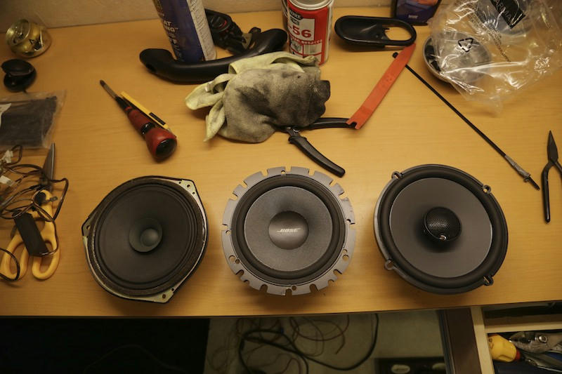 左から純正スピーカ、これまでのBOSE-1070、新しく用意したJBL-629(コアキシャル)