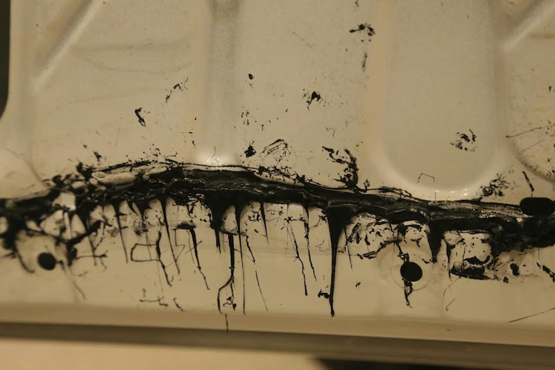 カッティングシートを貼る時に使うスキージにグリムのビニル&ラバーケア少し付けてそぎ落としていきます.