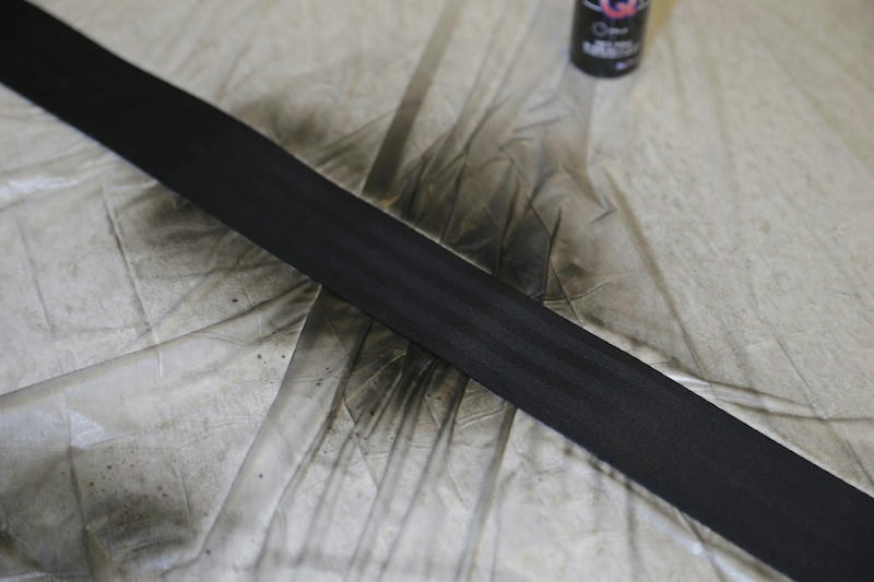 シートベルトの固定側も黒染スプレー、ベルトへの影響を考慮して加熱はしないでおきます.