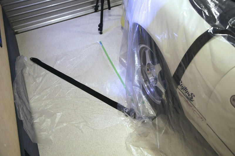 マスキングしたシートを見るとどれくらい吹きつけたか分かります.