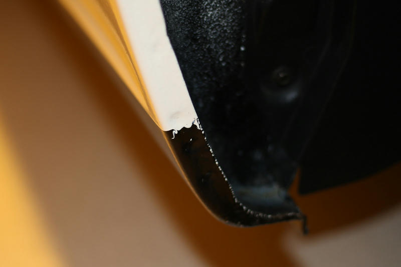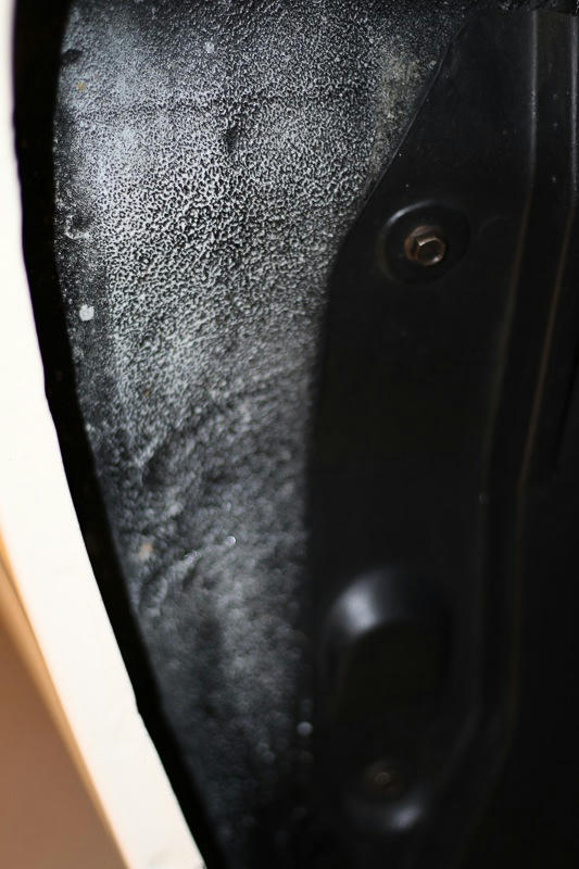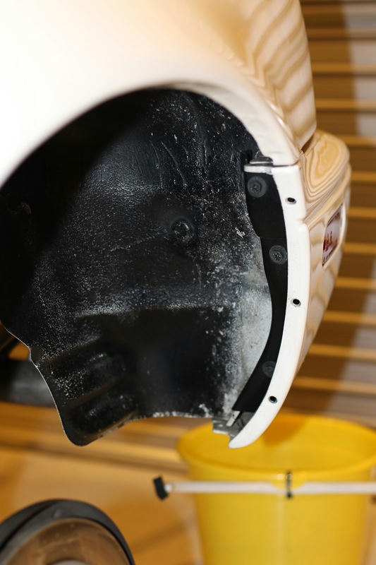 タイヤハウス後ろの下側、リブが3本入った部分は車体を横から見た際に向こう側が見えないようにするためと思います.新車時にどこまで塗られていたか覚えていませんがそれほど丁寧に塗られてはいなかった気がします.