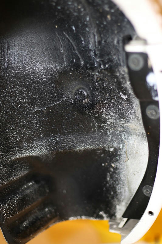 車体下部はピッチング塗装の次にサイドシル下部のブラック、その後で全体のホワイトが塗られている事がわかります.全損修復ですがこのような歴史は残されています.