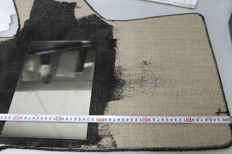 ステンレス板は300x200、これがフロアマットの端から330ミリ.